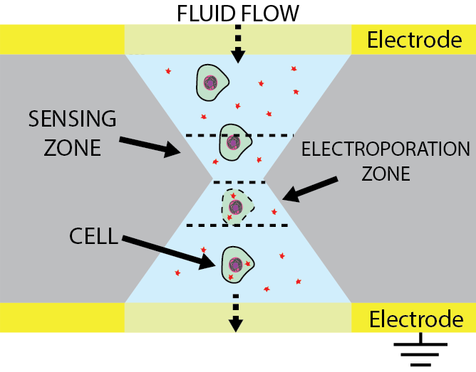 Cell therapies have radically transformed the treatment of cancer and have been shown to be efficacious in other diseases too. However, efficient, safe, and cell selective intracellular delivery remains a bottleneck for scalable and cost-effective manufacturing of cell therapies. Viral vectors are commonly used but significant unresolved concerns remain including high cost, payload limitations for larger cargos, and safety concerns. Physical methods to permeate the cell membrane, such as electroporation (EP), address many of the challenges associated with viral methods. We have developed a device that achieves Selective Permeabilization using Impedance Cytometry (SPICy). This couples multifrequency single cell impedance cytometry with real time, feedback controlled, low voltage single-cell electroporation. Impedance spectra are captured for each single cell and machine-learning based analysis enabled accurately distinguishing cells either in a label-free manner (by size), or via antibody-conjugated microparticles bound to the cell surface